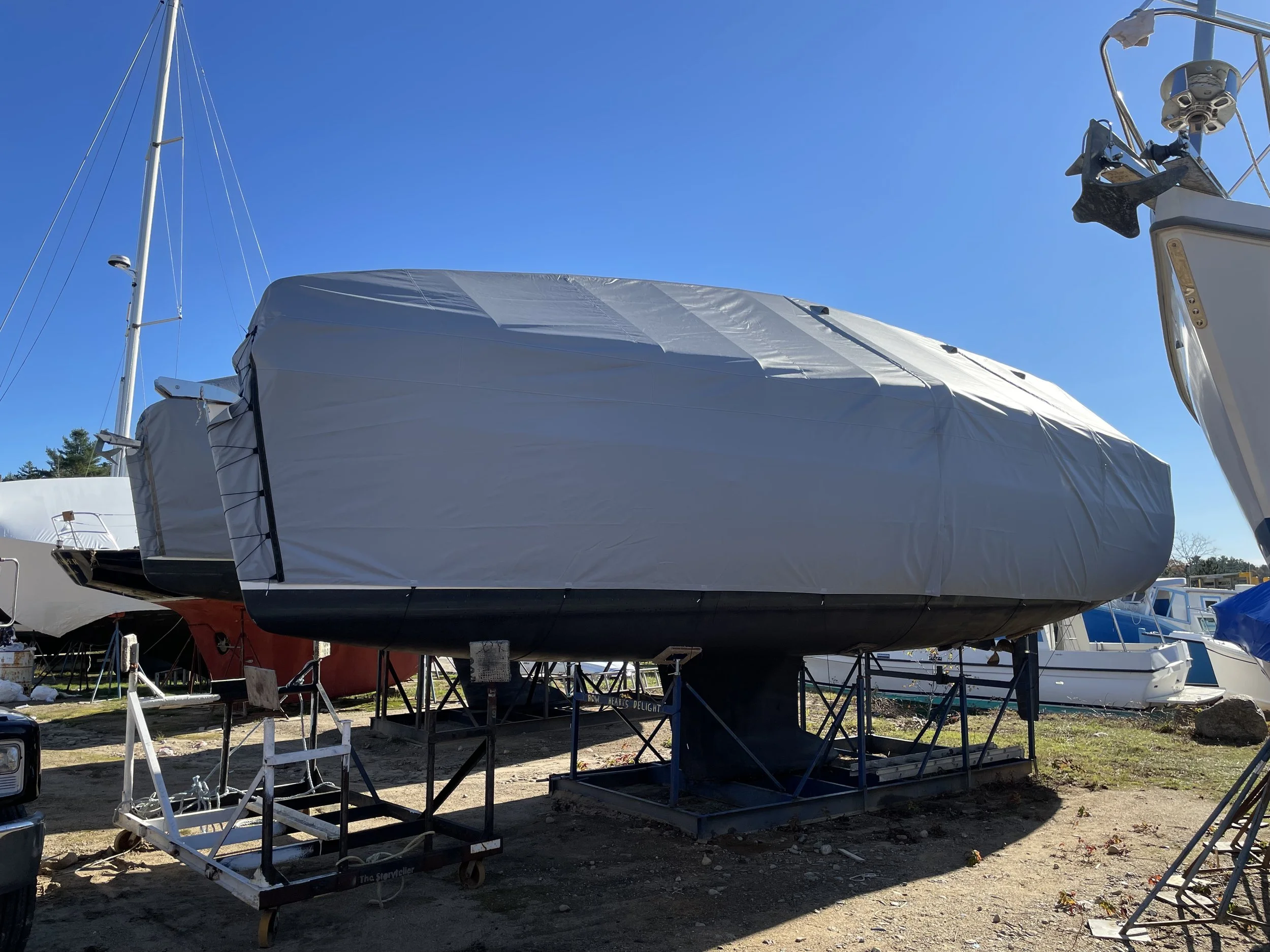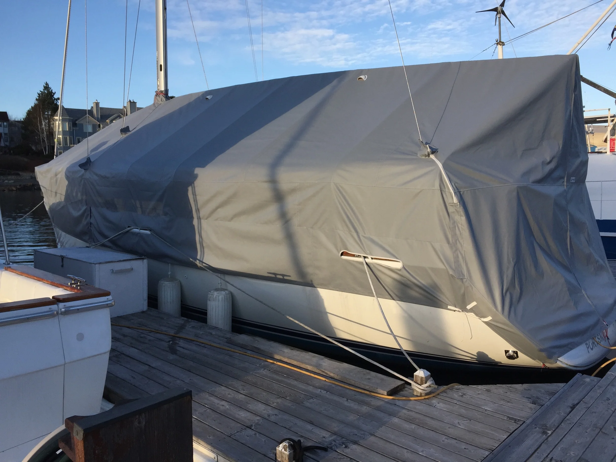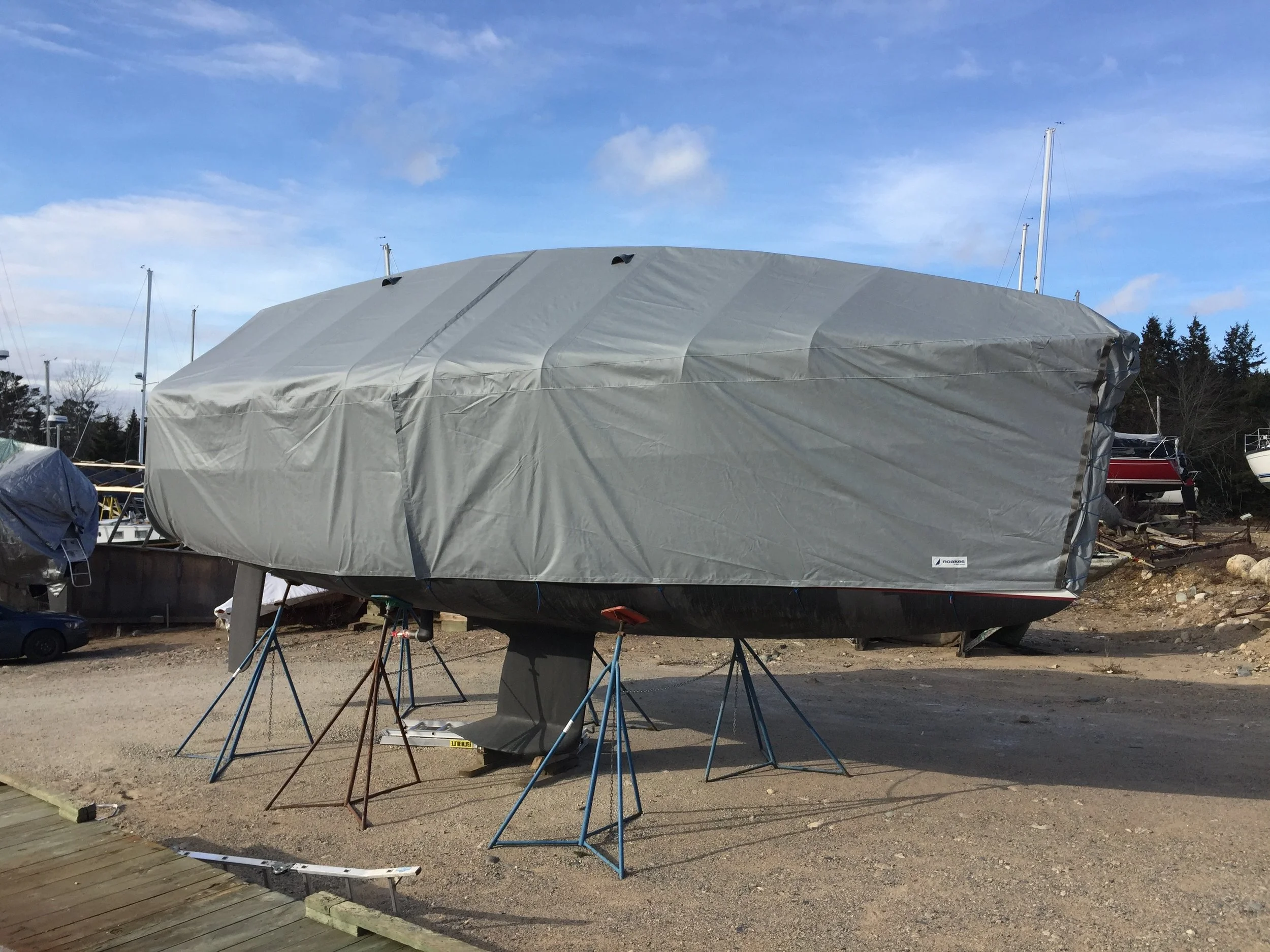 Winter covers protect your investment in the off-season. Noakes Canvas produces custom winter sailboat covers using an aluminum frame that’s built exactly to your boat’s measurements. Durable Top Gun material offers protection for many winters, resulting in an economical way to protect your boat for many years.