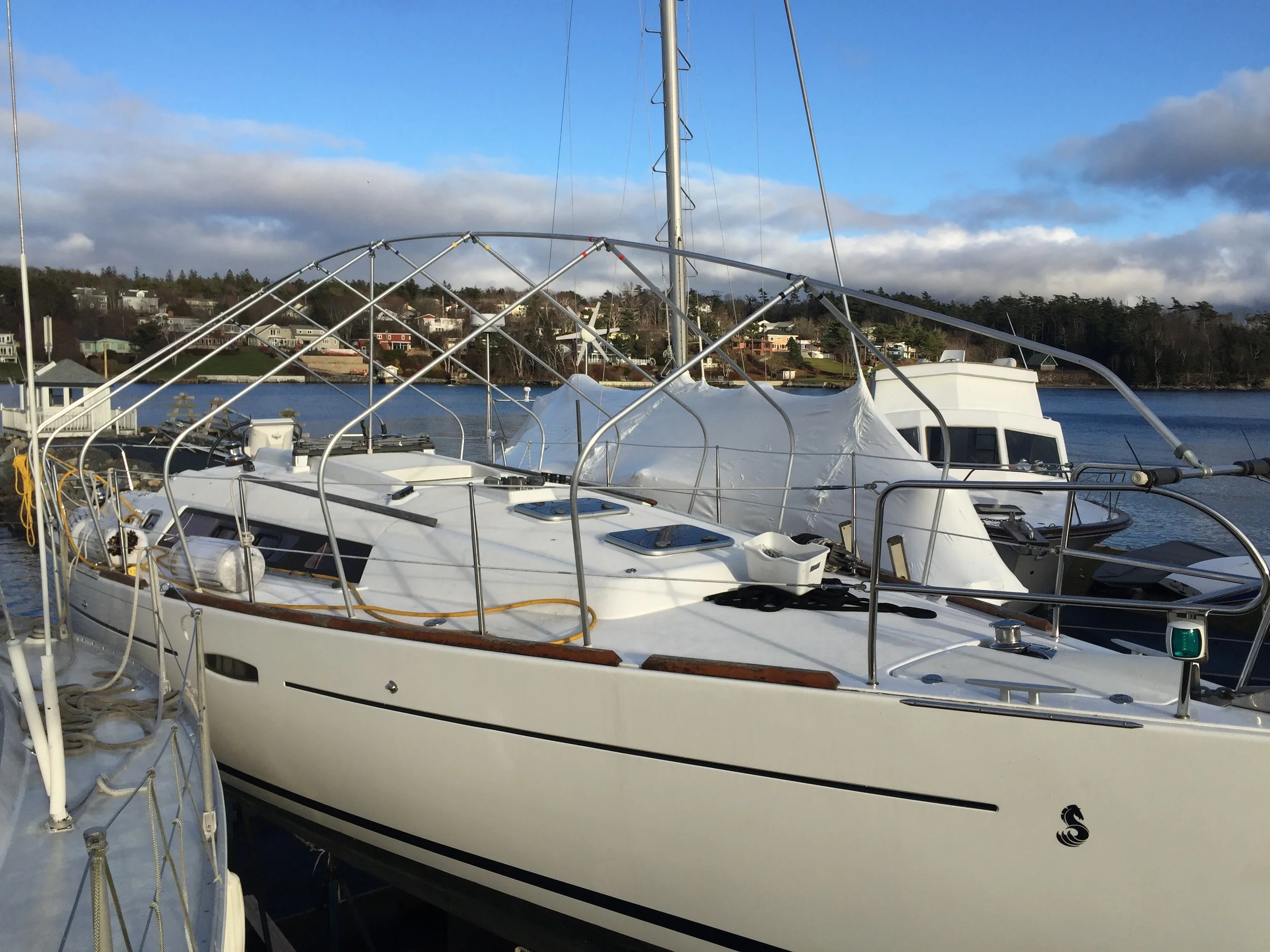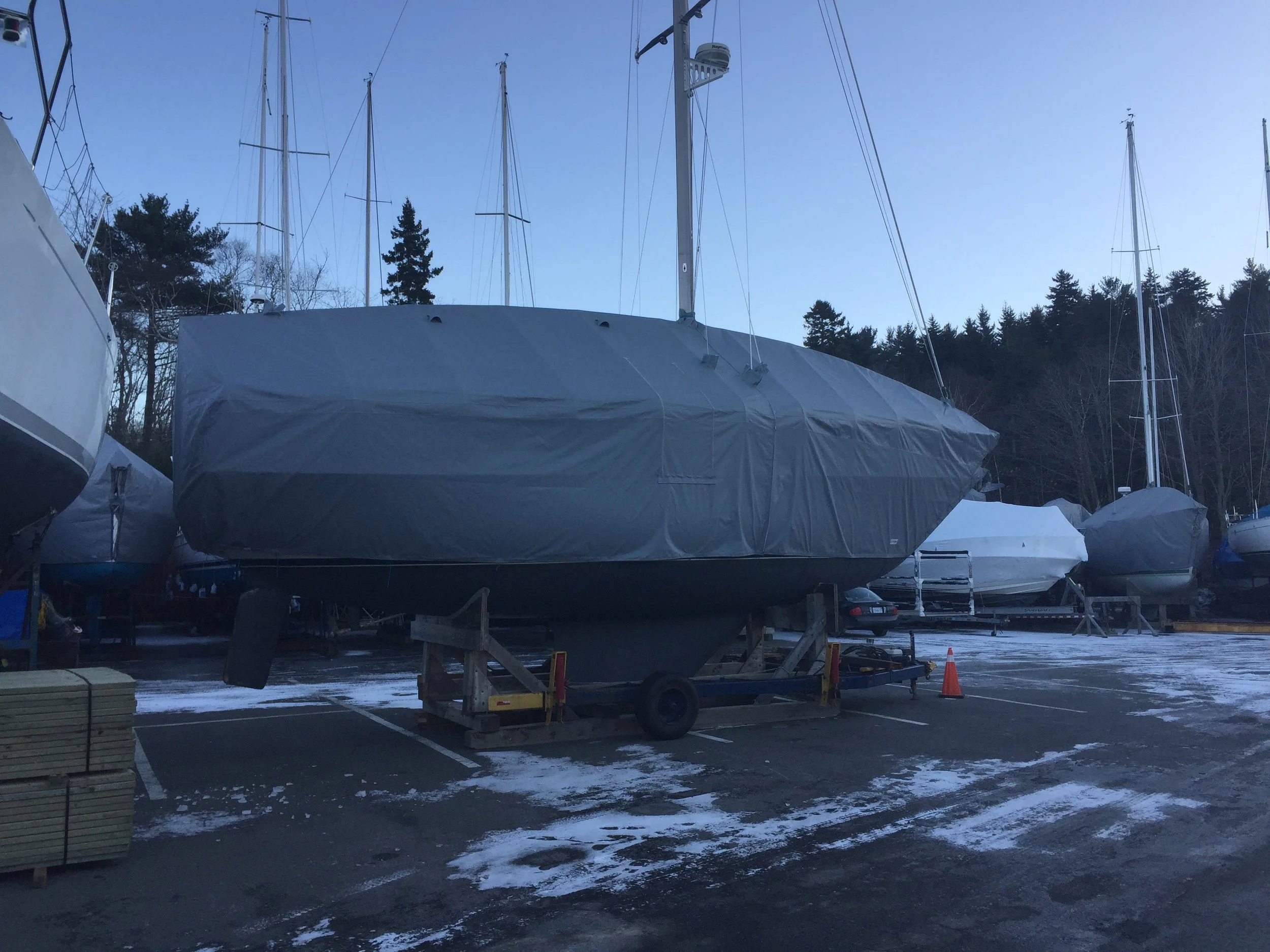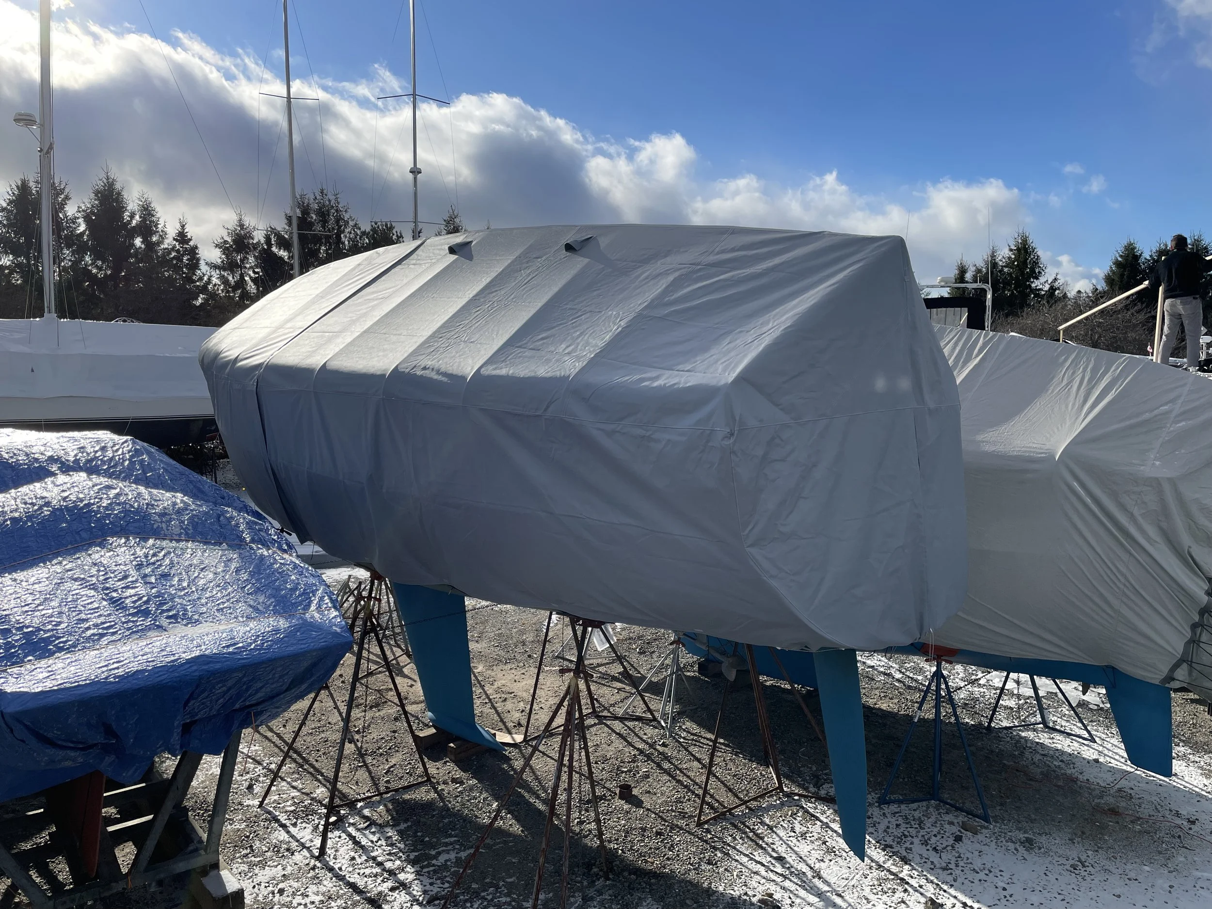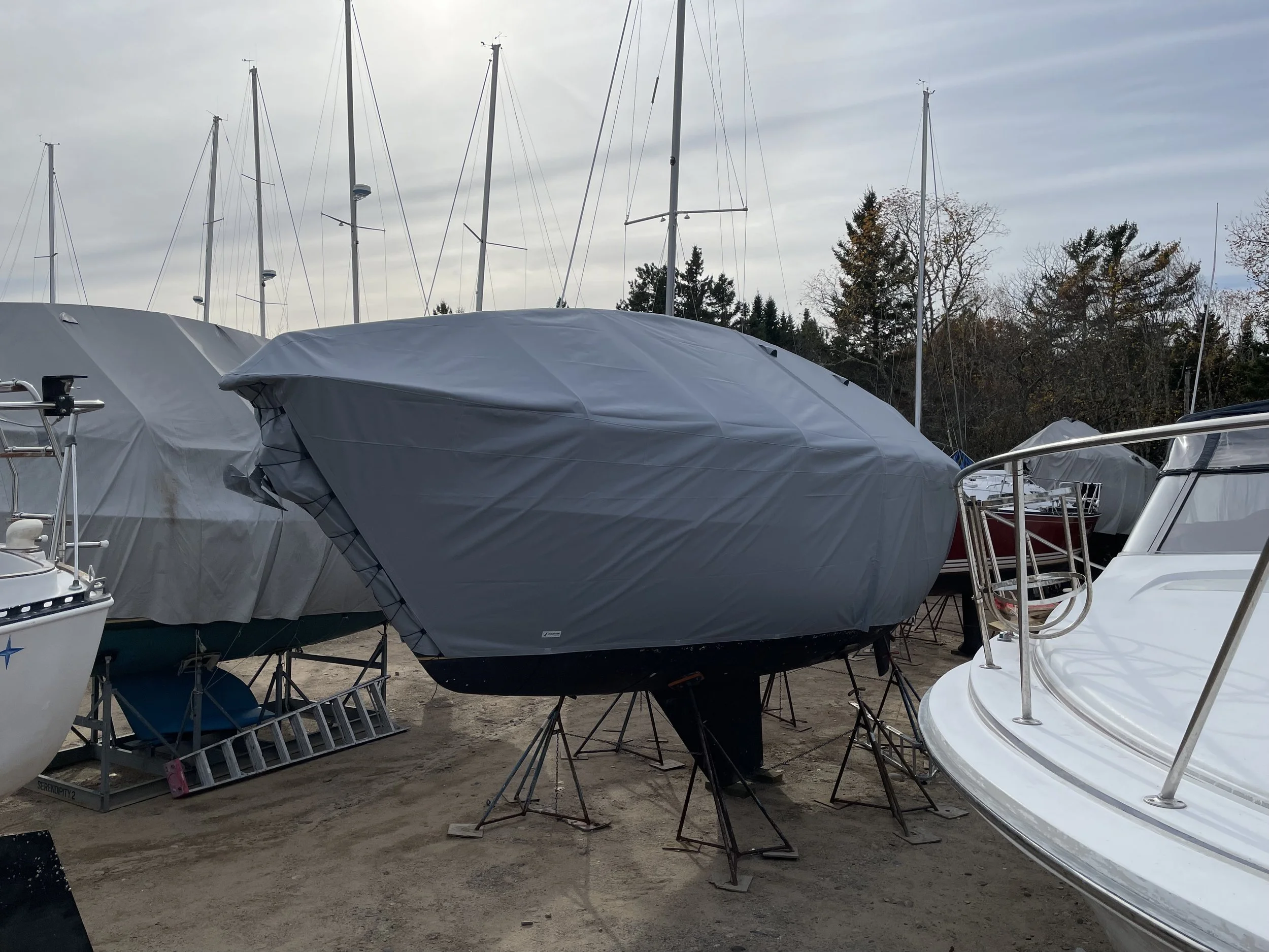 Winter covers protect your investment in the off-season. Noakes Canvas produces custom winter sailboat covers using an aluminum frame that’s built exactly to your boat’s measurements. Durable Top Gun material offers protection for many winters, resulting in an economical way to protect your boat for many years.
